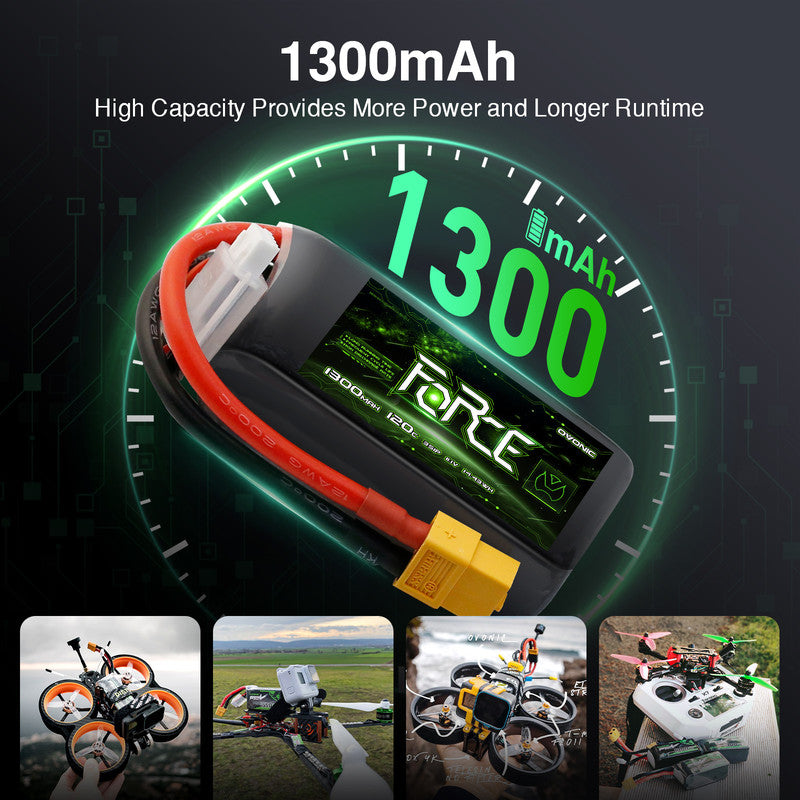 Ovonic 120C 3S1P 1300mAh 11.1V LiPo Battery for FPV - XT60 Plug - Brand: Ovonic 2x Ovonic 120C 3S1P 1300mAh 11.1V LiPo Battery for FPV - XT60 Plug * For the RC battery, only if the voltage and the plug match, then it will fit.Specifications of 120C 3S 1300mAh