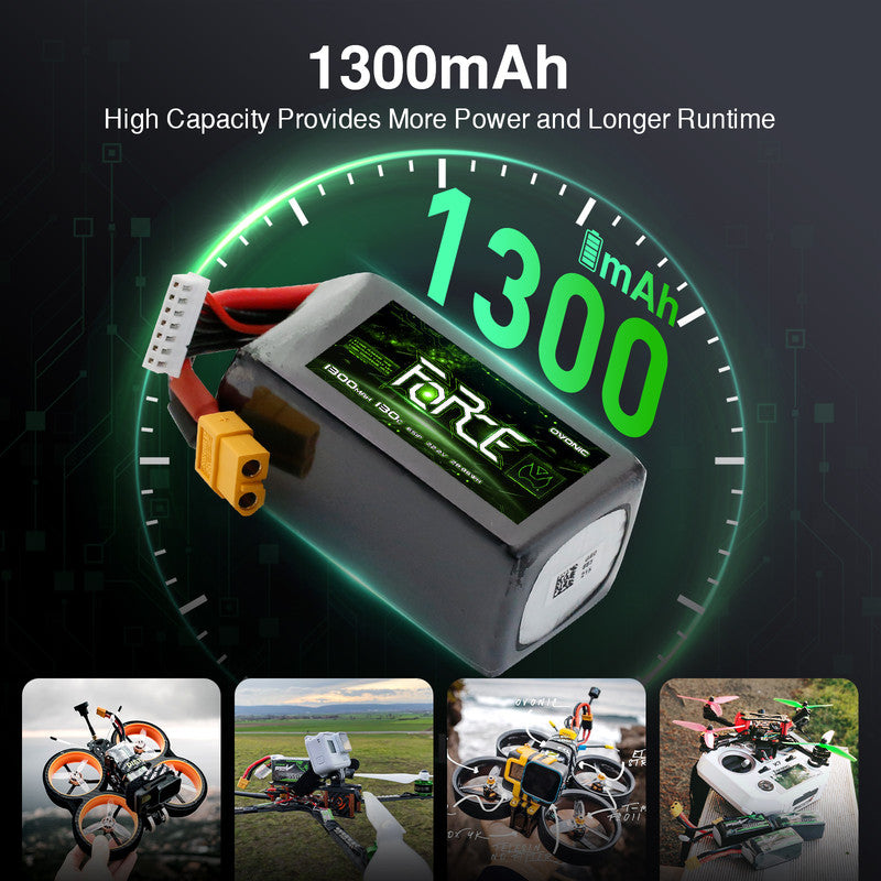 Lightweight and Agile: With a 1300mAh capacity and a low weight of around 180g, the Ovonic 130C LiPo battery allows for fast, responsive control and great maneuverability—ideal for racing and freestyle pilots who require both power and agility.