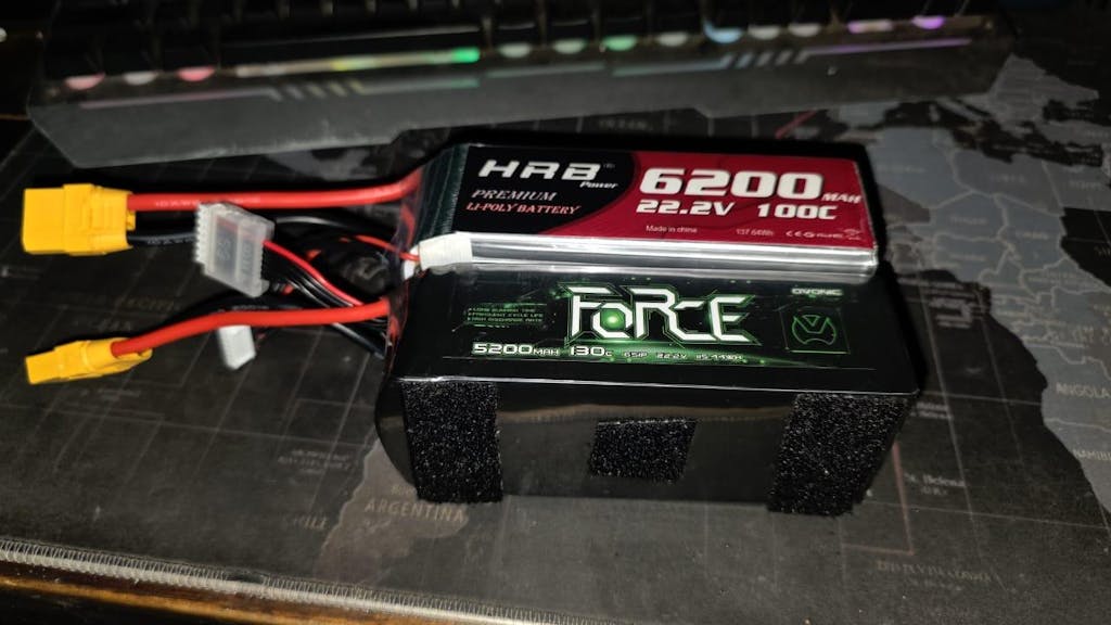 Storage: Store batteries at the nominal 3.8V per cell (22.8V for 6S) in a dedicated fireproof LiPo bag or container.