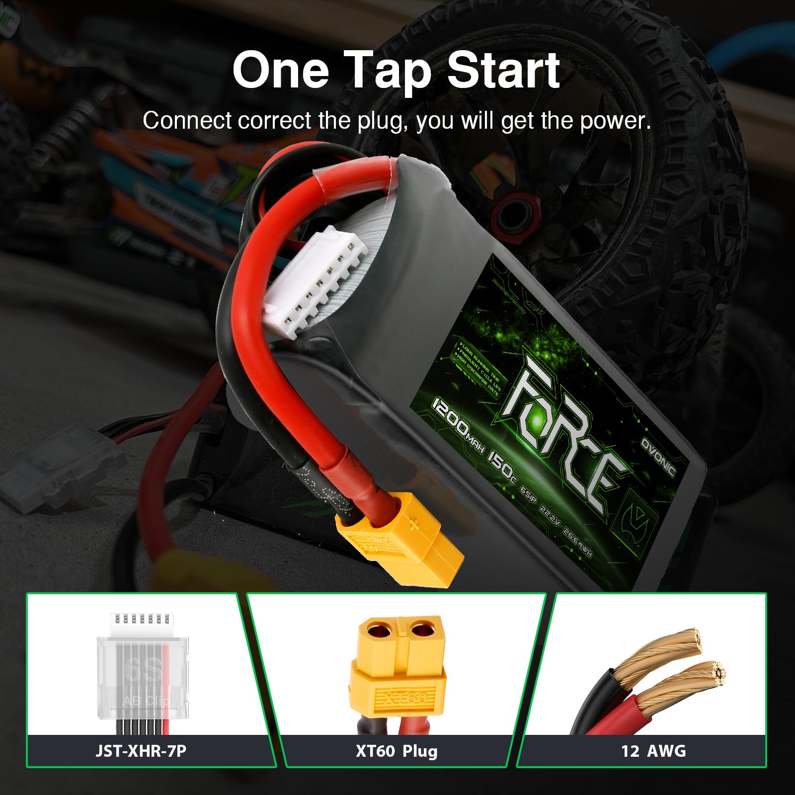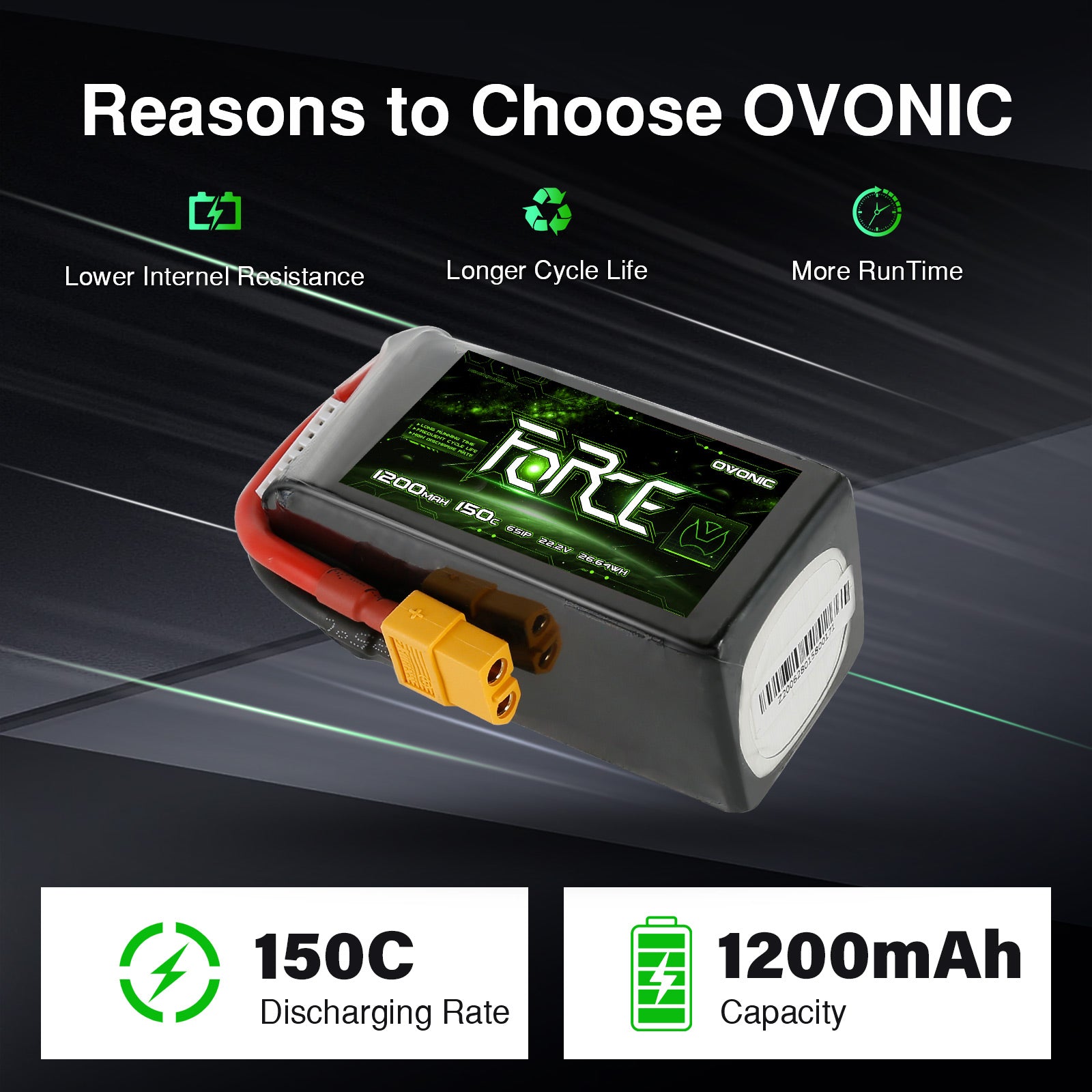 1 x OVONIC 1200mAh 6S 22.2V 150C Force Series LiPo Battery with XT60 Plug